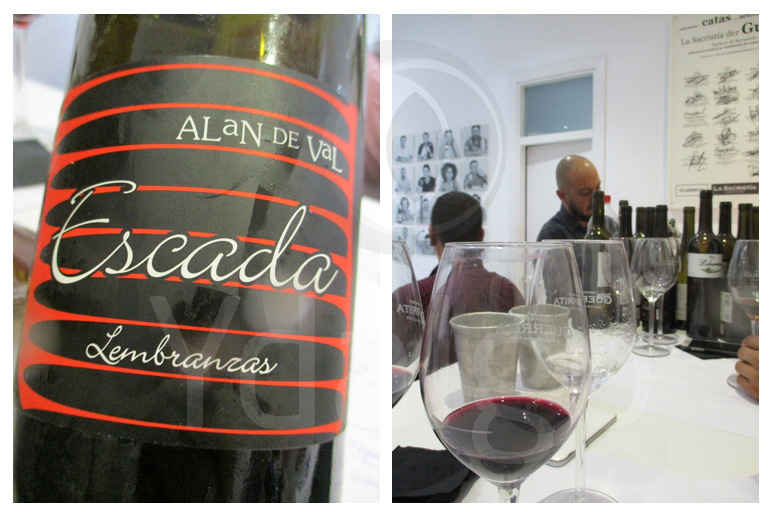 Y por último, un tinto con capa muy intensa del 2015., de viñas de más de 100 años de Garnacha tintorera de la zona de Valdeorras. Un vino para disfrutar largamente de él. Su nombre es Escada Lembranzas de Alan de Val.